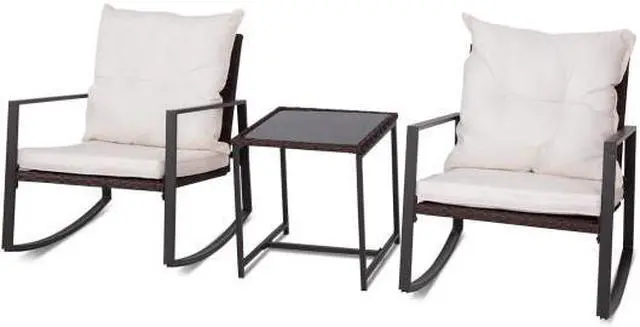 Stylish Rocking Chair Set: This 3-piece set includes 2 rocking chairs and 1 coffee table, making it a perfect addition to your patio, garden, backyard, deck, or balcony. Its classic design suits any home decor style.