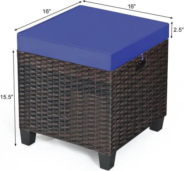Lightweight and Convenient Ottomans: Crafted with PE rattan and premium steel, the ottoman is solid yet lightweight to maneuver easily from one place to another. What's more, the ottoman has a built-in hollow-handle which plays 2 roles. Besides, the cushions can be fixed to the ottoman by tying it with the ropes. This prevents the cushion from slipping from its place.