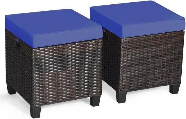 Durable and Sturdy Structure: The outdoor ottoman set is made of a reinforced steel structure that makes it extremely durable. More, wrapped with hand-woven PE rattan, the 2pcs patio ottoman is suitable for years of outdoor use. It is worth mentioning that the four-wedge foot gives more stability to the ottoman and withstands a large load capacity.