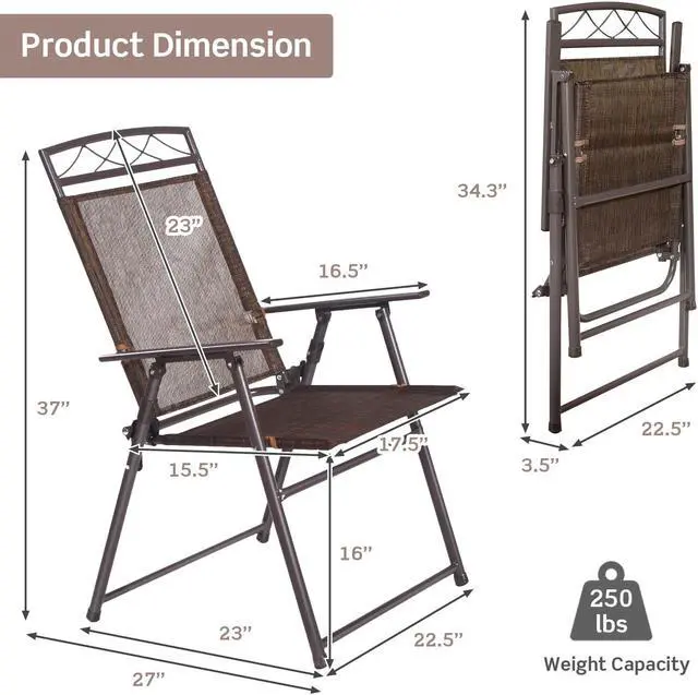 Wear and Fade Resistant Textilene: Textilene material of backrest and seat are worn and fade resistant as well as maintain brand new. Its leisure style matches any decor of your patio or backyard.