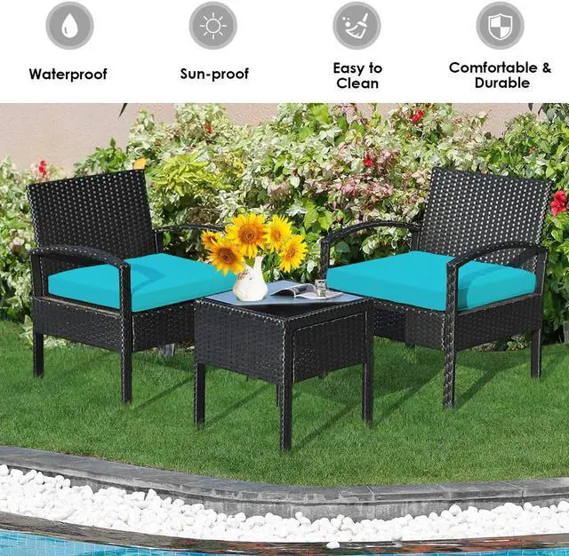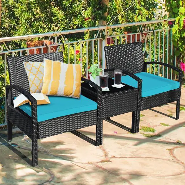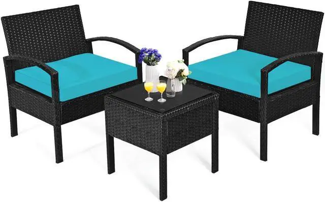 Excellent Durability and Stability: Constructed of steel frame and wrapped with PE wicker, this patio furniture set is not easy to deform with strong toughness and superior load-bearing performance. Both table and chairs are equipped with anti-skid foot pads to protect your floor while enhancing overall stability.
