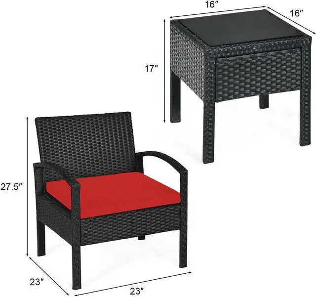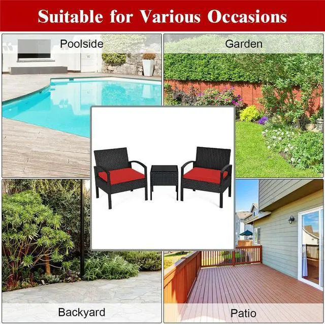 Excellent Durability and Stability: Constructed of steel frame and wrapped with PE wicker, this patio furniture set is not easy to deform with strong toughness and superior load-bearing performance. Both table and chairs are equipped with anti-skid foot pads to protect your floor while enhancing overall stability.