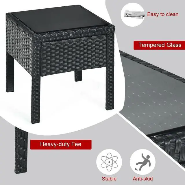 Coffee Table with Glass Top: This bistro set features an elegant coffee table that is perfect for drinks, fruits, newspapers, and other items. The thick tempered glass top is firmly fixed by four suckers to avoid easy moving or falling.