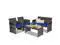 -Rattan patio set includes one loveseat, two single chairs and one coffee table.