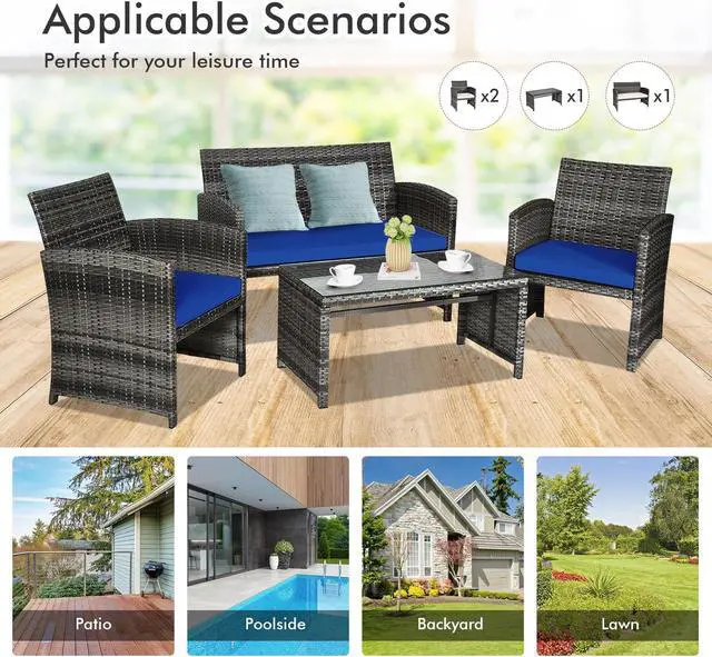 Cozy and Humanized Design: Comes with thick padded cushions, this 4pcs patio will provide you an extraordinary comfort experience. And, with smooth zipper, the cover of the cushion is removable and washable. Designed for ultra comfy, this patio furniture set has an Ergonomic design of wide armrests and curved backrest.