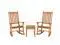 3 piece outdoor wood set, two rocking chairs and one coffee table