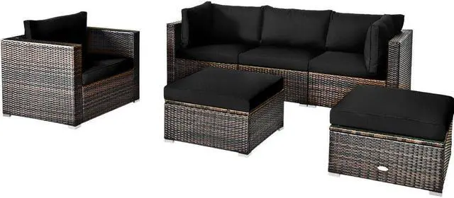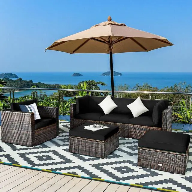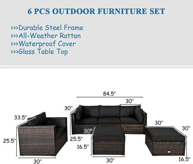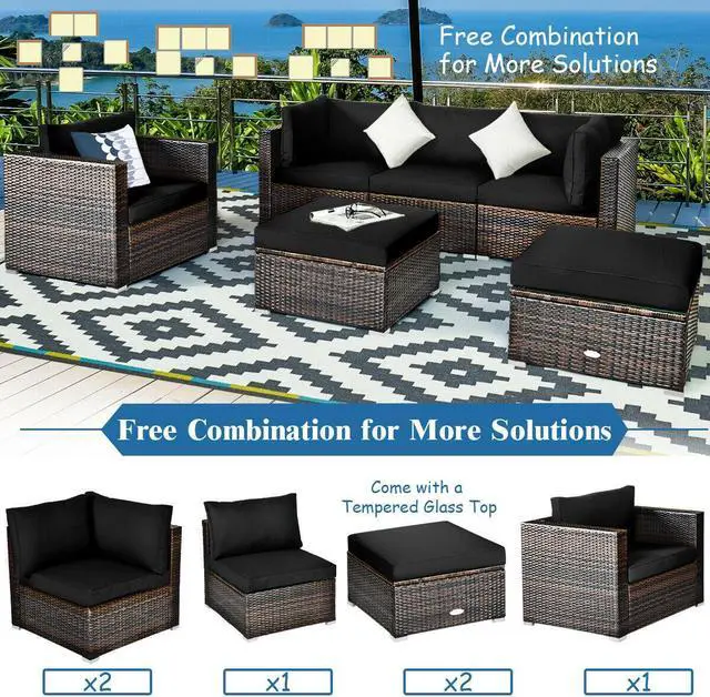 Flexible Combination and Free Conversion: This 6-piece patio furniture comes with 2 corner sofas, 1 arm less sofa, 1 single sofa, and 2 ottomans. Removing the cushion, this ottoman can be changed to a glass coffee table because of an included tempered glass top. Each piece of this sofa set can be used separately or easily combined.