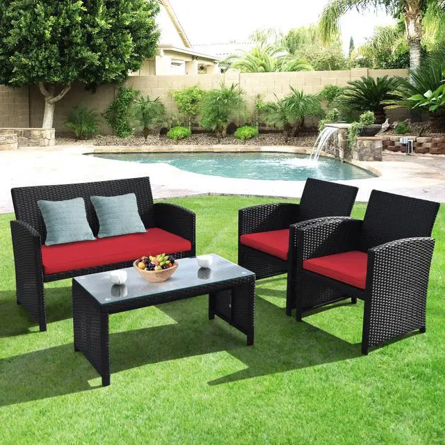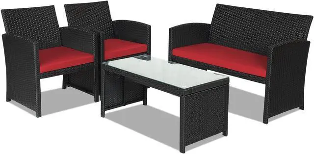 Comfortable Patio Sofa Set: This conversation set with 1 loveseat, 2 single sofas, and 1 coffee table can perfectly satisfy the seating needs of a group of people. Our 4 Piece wicker set features comfortable cushions that are made of durable polyester fabric and a soft sponge. You and your family will enjoy your leisure time when a seat on the sofa.