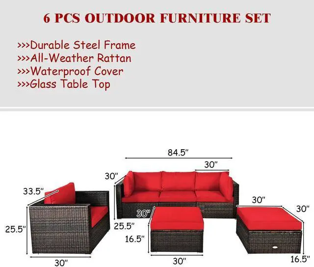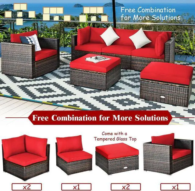 Flexible Combination and Free Conversion: This 6-piece patio furniture comes with 2 corner sofas, 1 arm less sofa, 1 single sofa, and 2 ottomans. Removing the cushion, this ottoman can be changed to a glass coffee table because of an included tempered glass top. Each piece of this sofa set can be used separately or easily combined.