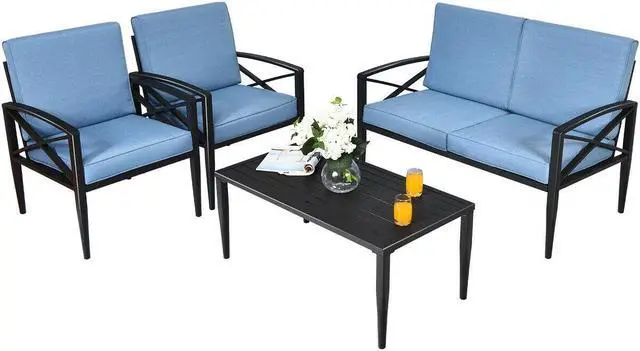 Premium Aluminum Frame: Supported by pure aluminum frame, this 4pcs patio set is absolutely stable and durable for years to come, not to mention its long-life span with weather-proof and sunlight resistant. Black powder coating makes sure no rust will occur any time soon.