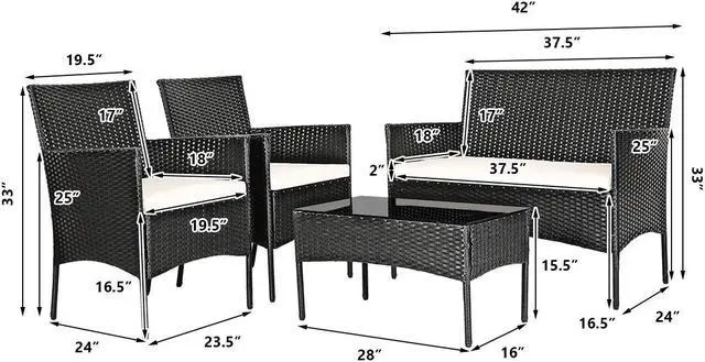 • Loveseat size: 42" x 24" x 33" (L x W x H)