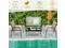 Dimension of 4 Piece Patio Set: Size of loveseat: 42.5" x 24.4" x 31.5" (L x W x H), size of single sofa: 24.5" x 22.8" x 31.5" (L x W x H), size of tea table: 31.5" x 17.7" x 14.6" (L x W x H), max loading weight capacity: 220 lbs