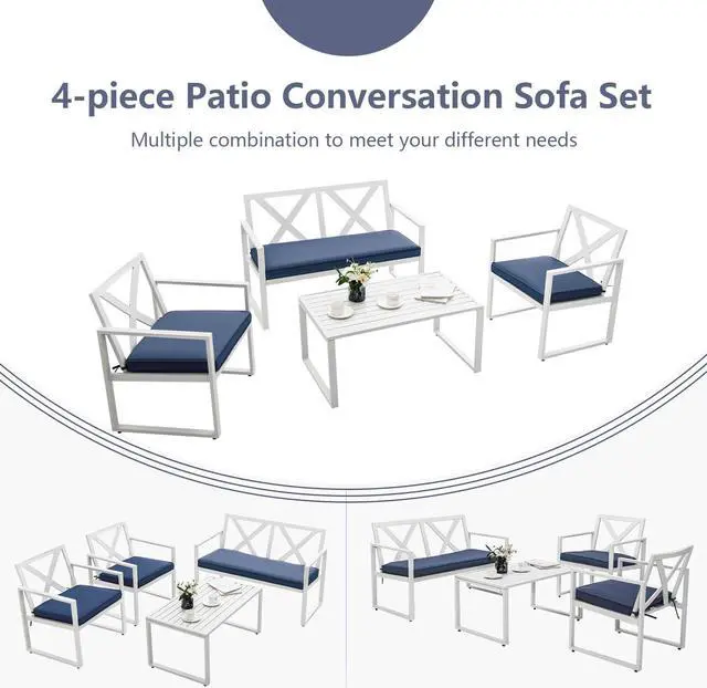 Suitable for Various Occasions: With stylish style and clean lines, our 4-piece patio conversation sofa set will be a perfect addition to your backyard, poolside, living room and more. Plus, this patio set can be used in different combinations or individually depending on the size of your space.