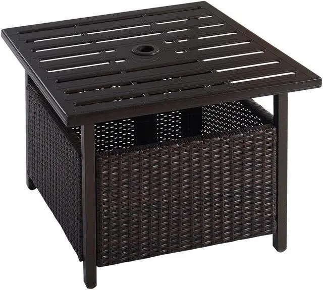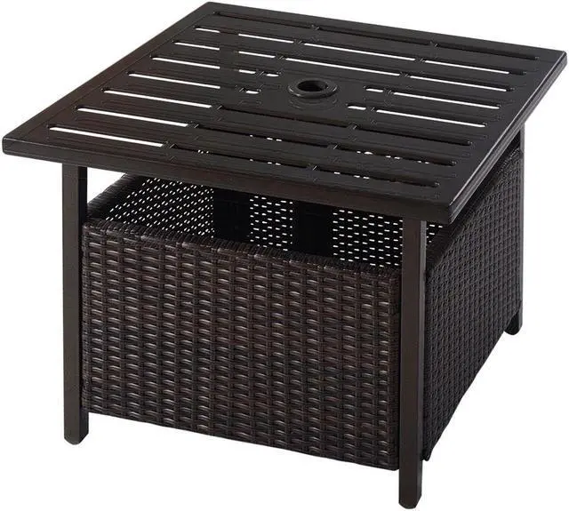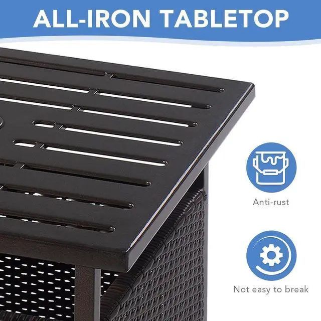 Storage Space Underneath: There is storage underneath the tabletop which is made of premium artificial PE wicker and steel bottom. It's originally used to hold the umbrella poles, and you can add additional sandbags on it to increase the overall stability of the structure.