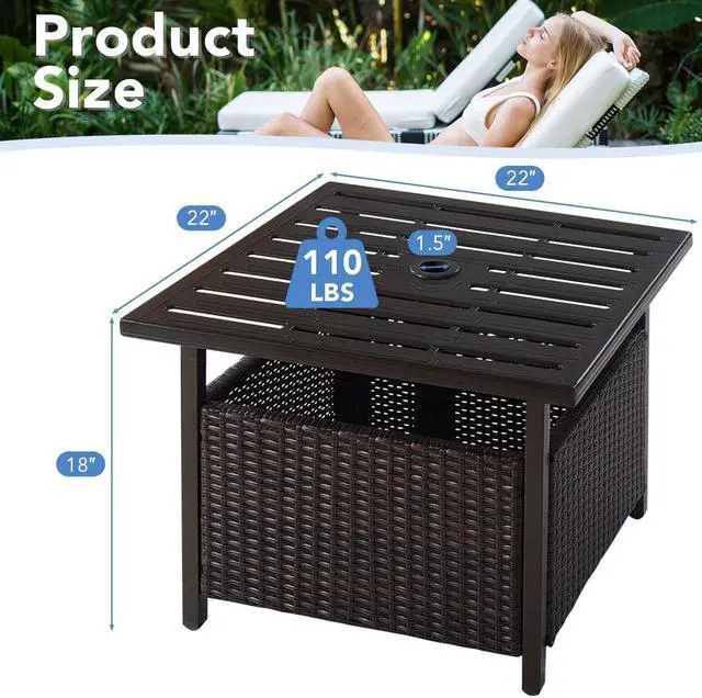 Reserved Umbrella Hole: There is a reserved umbrella hole on the tabletop. It's designed to hold umbrella poles with a diameter of up to 1.5 inches, thus fitting most umbrella sizes. By installing an umbrella, it will protect you and your table from sunlight, protecting you on hot summer days.