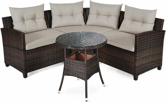 Sturdy Frame and Premium Rattan: The outdoor furniture sofa set is constructed of a strong steel frame and hand-made weather-resistant PE rattan which is durable. And the weight capacity of the set is improved by outstanding craftsmanship. What's more, the tempered glass coffee table top is not only beautiful but also safe and sturdy.