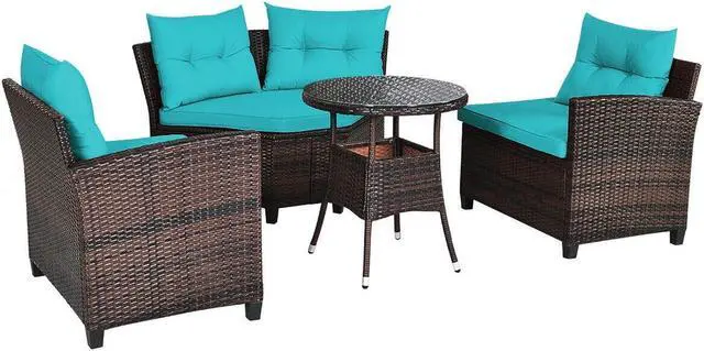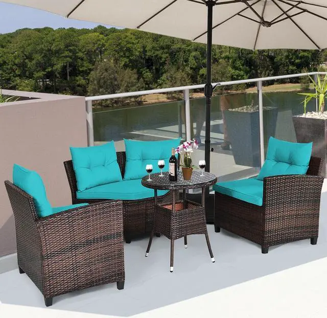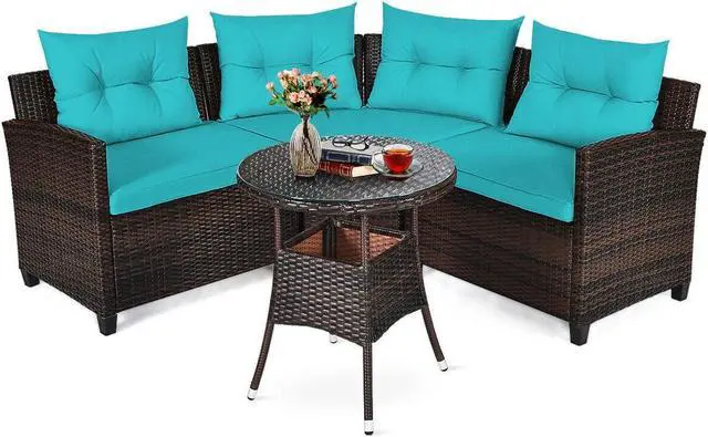 Sturdy Frame and Premium Rattan: The outdoor furniture sofa set is constructed of a strong steel frame and hand-made weather-resistant PE rattan which is durable. And the weight capacity of the set is improved by outstanding craftsmanship. What's more, the tempered glass coffee table top is not only beautiful but also safe and sturdy.