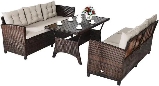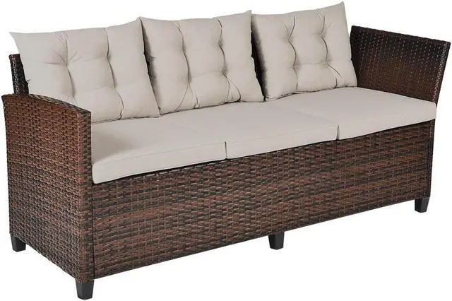 Comfortable Sofa Set: Equipped with 6 padded seat cushions and 7 back cushions, this rattan sofa set with good elasticity is very soft to provide you with a comfortable sitting experience. You can sit on the sofa, lie to have a rest and gather your family and friends to enjoy leisure time.