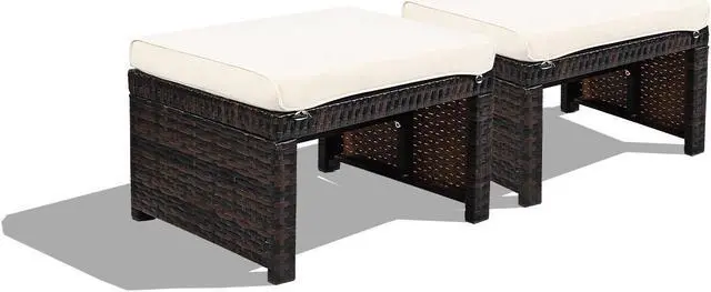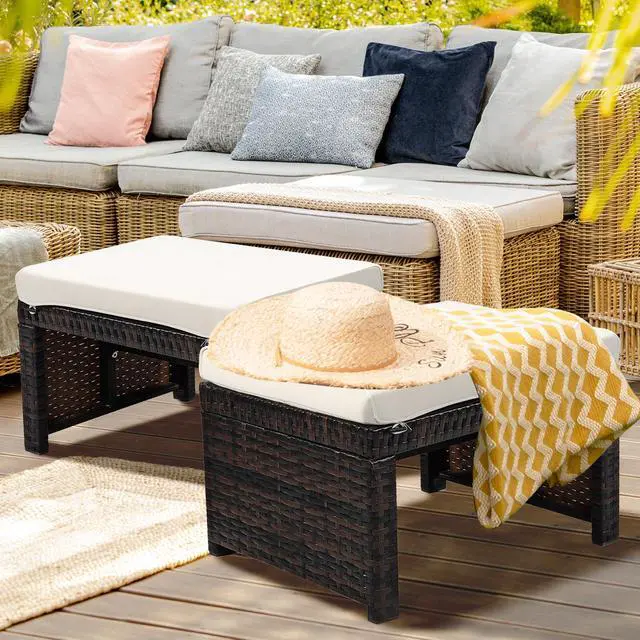 Simple Appearance: The simple rattan footrest can match the space of any style. Weather-resistant PE rattan and waterproof polyester allow you to enjoy an excellent experience indoors and outdoors throughout the year. The ottoman can be used not only as a footrest but also as a temporary seat.