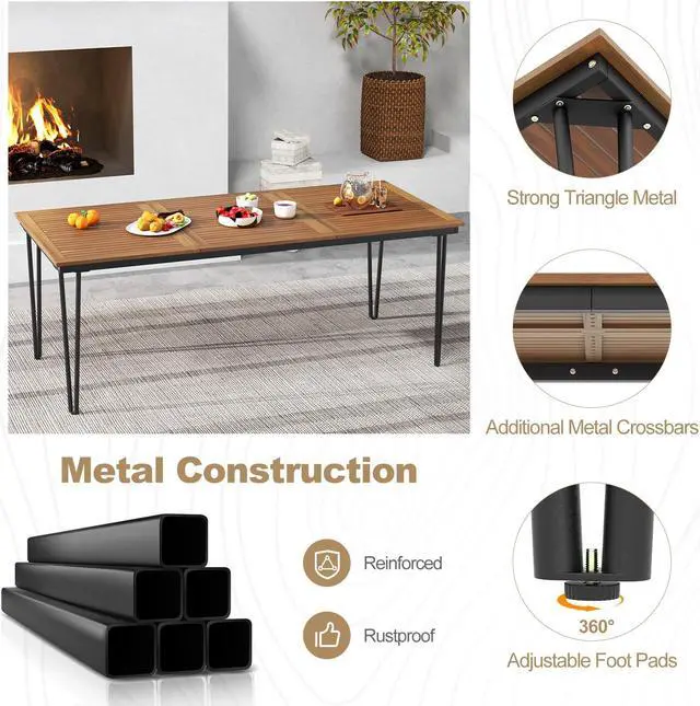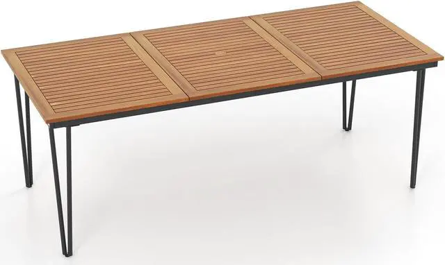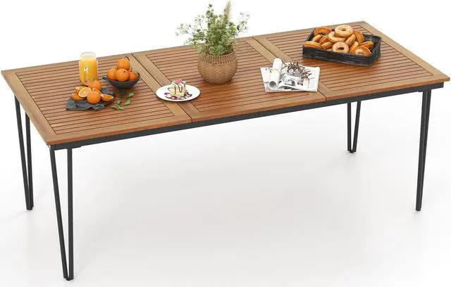 Acacia Wood and Slatted Design: Made of solid acacia wood, the patio table combines ideal sturdiness and durability. Plus, its anti-crack tabletop presents a slatted design, which will help drain rainwater during outdoor applications.