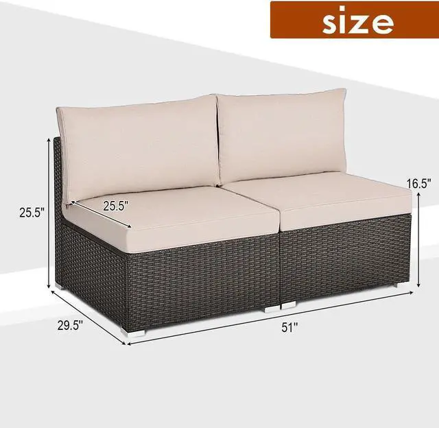 Sturdy and Durable Frame: Crafted with weather-resistant PE rattan and powder-coated steel, the arm less chairs are sturdy to ensure long-term outdoor usage. And the frame of the sofa set is stable and won't deform with a large load capacity.