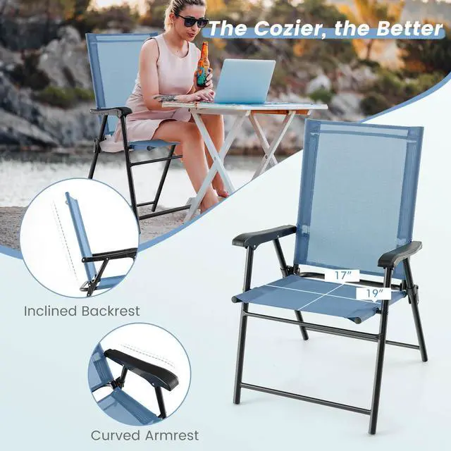 No More Stuffiness: When you sit on these patio folding chairs, the premium fabric makes you feel breathable. Moreover, it is quick-drying and wear-resistant, which is perfect for the outdoor environment.