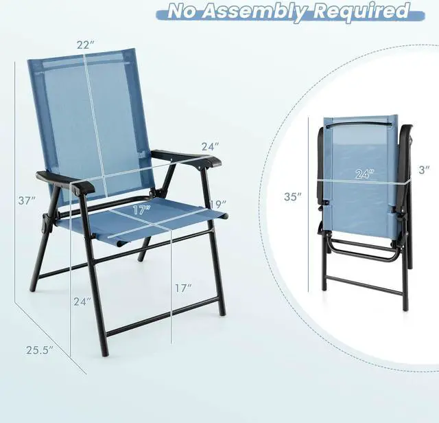 Product Dimension: Unfolding dimension of each chair: 25.5" x 24" x 37" (L x W x H), folding dimension of each chair: 35" x 24" x 3" (L x W x H). No need to assemble for time-saving.