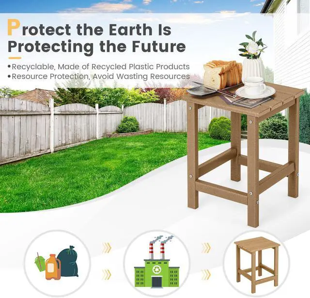 Born for Outdoors: Vary from wood material that is easy to crack and deform and metal material that is easy to rust, this patio side table is made of selected HDPE material, which takes advantage of being weather-resistant, fade-resistant, sun-protective and waterproof, perfectly standing to the outdoor elements.