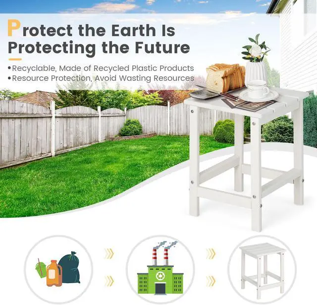 Born for Outdoors: Vary from wood material that is easy to crack and deform and metal material that is easy to rust, this patio side table is made of selected HDPE material, which takes advantage of being weather-resistant, fade-resistant, sun-protective and waterproof, perfectly standing to the outdoor elements.