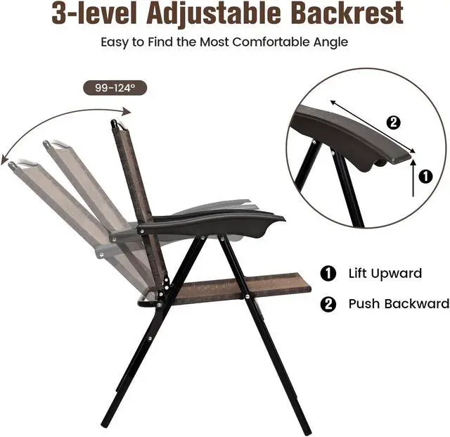 Easy To Use And Maintain: These chairs do not need to be assembled and can be used when opened, which is very convenient. In addition, textile fabrics are mildew-proof, fade-resistant, wear-resistant, and breathable, so these chairs are easy to clean. Just wipe it with a damp cloth or a dry cloth. And it doesn't take a lot of time to maintain Keywords: Folding sling chair set of 4; 4pc Folding sling chair; Folding chairs with armrest.