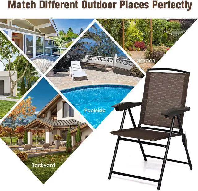 4pc Chairs For Multi-function Usage: These four folding chairs can be placed in different places, such as courtyards, lawns, gardens, porches, balconies, swimming pools or indoors. They can be combined in a variety of ways, you can choose to use them in pairs or separately. On your own Home Garden creates a relaxing space with this folding chair, enjoying leisure time with your family and friends.