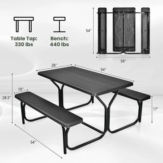Sturdy and Rust-resistant Steel Frame: The steel frame is powder-coated with a rust-resistant finish, super smooth. The table bench set frame is made of reinforced steel to ensure sturdiness and stability, durable and perfect for use for years.