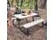 Simple Design and Exquisite Workmanship: The picnic table and bench set combine practicality and aesthetics together, at a great height for sitting and eating. With a simple design, smooth lines, natural shape, exquisite workmanship, which makes an ideal picnic table.