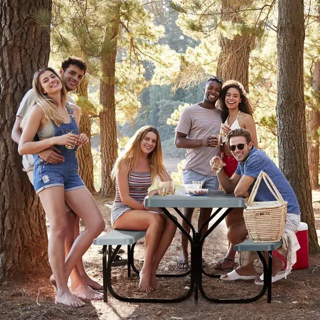 All-Weather Resistant and Perfect For Outdoors: As the outdoor picnic table set, it also has good wear resistance, tough and cold-resistant, ideal for any weather and any place. With UV-protection table surface, ensures durability and will not crack, chip or peel. The table and bench surface are also stain-resistant and easy to clean, you don't have to spend much time on cleaning.