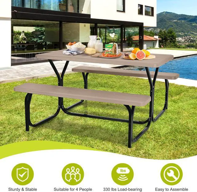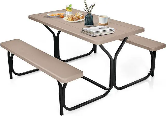 SlickBlue HDPE Outdoor Picnic Table Bench Set with Metal Base