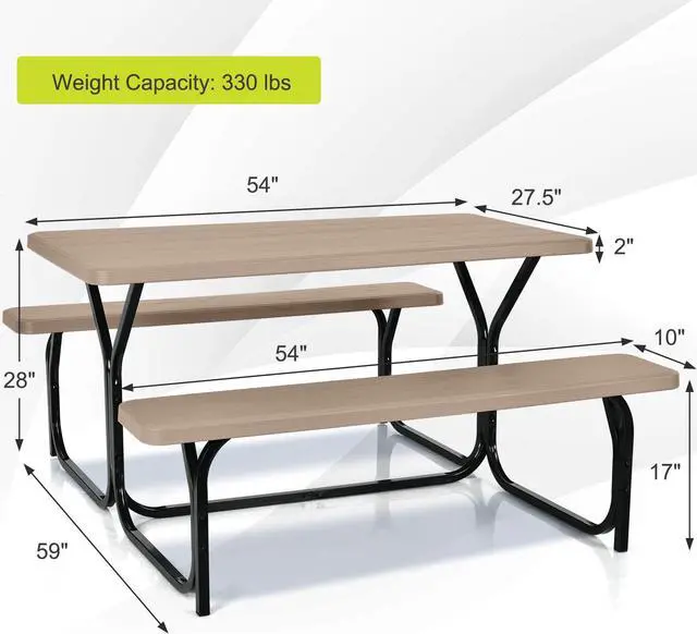 Sturdy and Rust-resistant Steel Frame: The steel frame is powder-coated with a rust-resistant finish, super smooth. The table bench set frame is made of reinforced steel to ensure sturdiness and stability, durable and perfect for use for years.