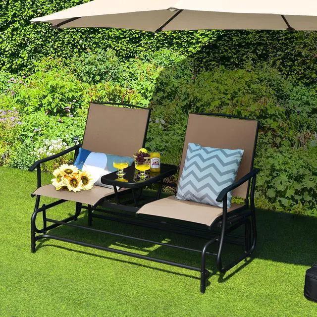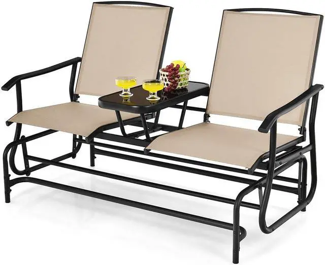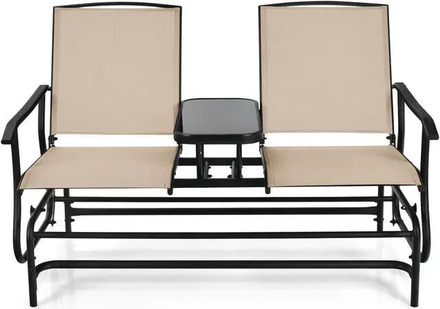 SlickBlue 2-Person Double Rocking Loveseat with Mesh Fabric and Center Tempered Glass Table
