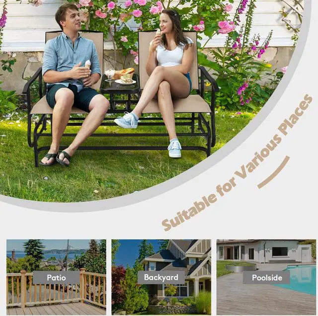 Practical and Comfortable: There is a tempered glass table in the center of this two-person rocking chair as a tea table, it is convenient for you to put some snacks, drinks, etc. for eating during the break. The armrest of this rocking chair has an ergonomic curve, providing extra comfort and relaxation for your arms.