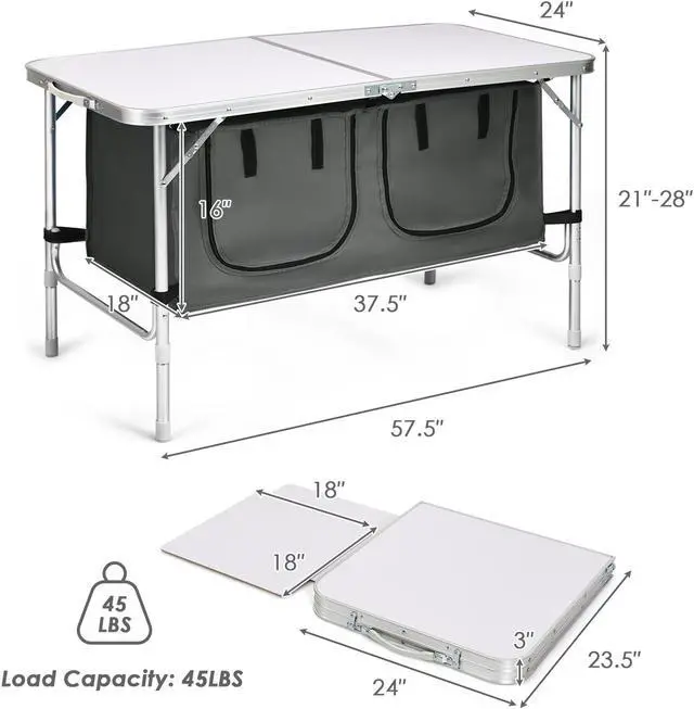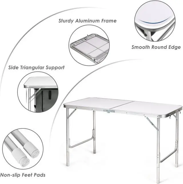 Strong Structure and High Load-bearing: Density board and aluminum material ensure the high quality of this folding table. And the anti-deformation wrap also extends the service life of the table. The triangular structure and reinforcement measure improve the stability of the table and enable it to withstand the weight of 45 lbs.