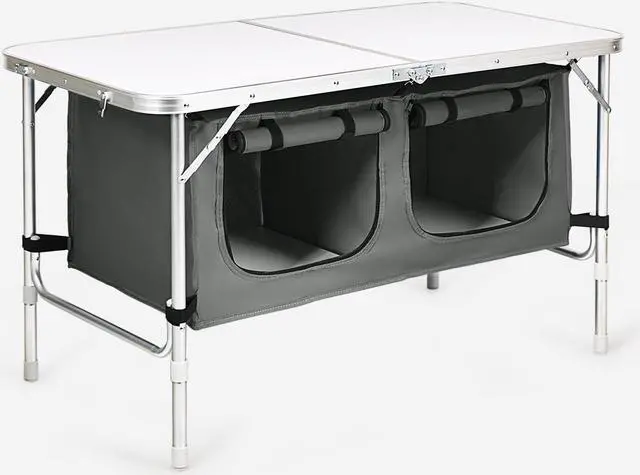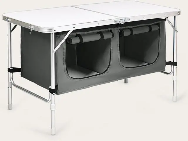 Large Capacity Lockers: The outdoor folding table itself has an oversized storage locker for all kinds of food, drinks or cutlery. Zipper design also prevents items from falling out. Besides, with Velcro and 6 hooks, you can easily secure the locker. In addition, you can put two pieces of wood in a locker to improve load bearing and stability.