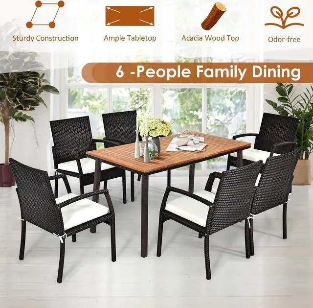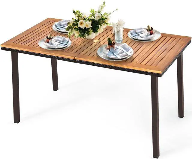 Acacia Wood Table: The table has a hard-wood tabletop, which is naturally massive and reliable for daily use. Braced by a powder-coated steel frame, it is stable and rust-free to endure harsh outdoor environments.
