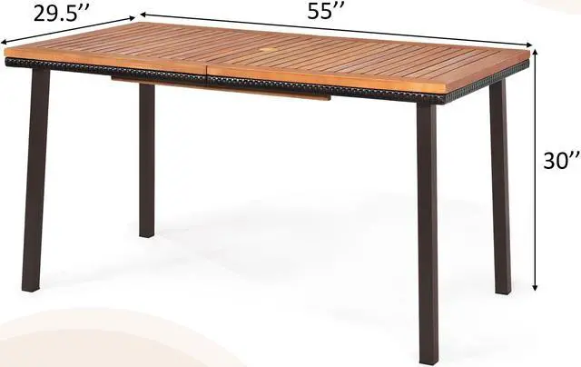 Applicable Indoors and Outdoors: Featuring a 2" hole for setting patio umbrella (not included), this versatile table is an ideal addition to outdoor events. In addition, the umbrella hole can be covered with a plug, so nothing will fall from it, which making the furniture a great indoor dining table.