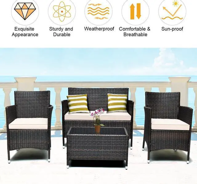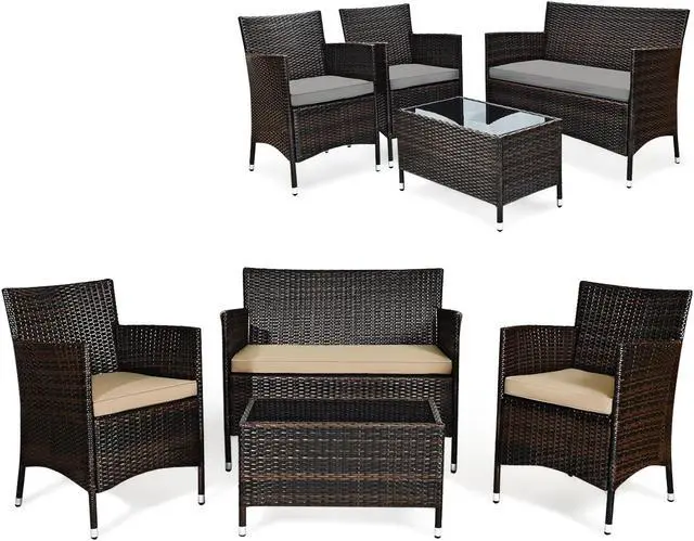 4-Piece Set: Includes two single chairs, one loveseat, and a tempered glass coffee table for a complete seating arrangement.
