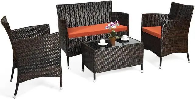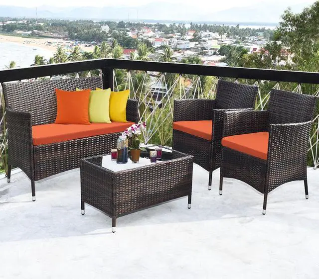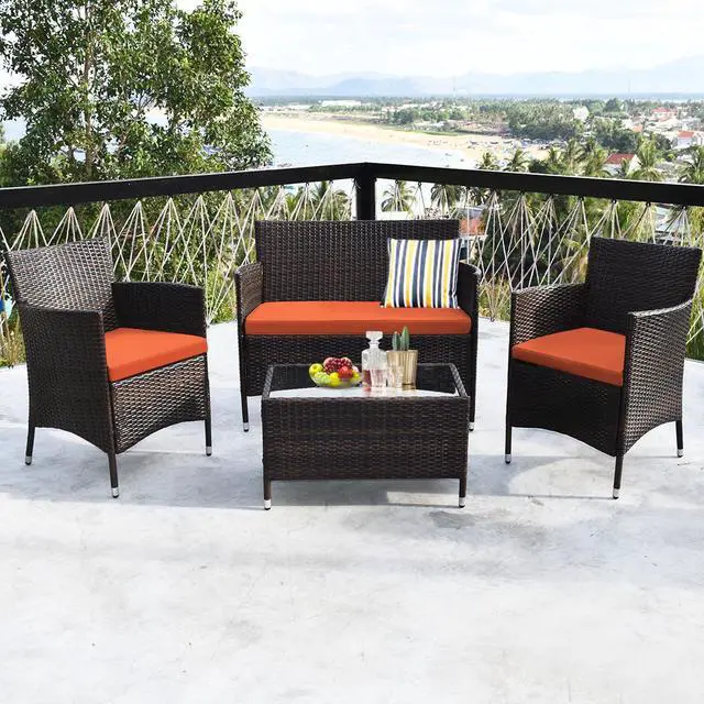 4-Piece Set: Includes two single chairs, one loveseat, and a tempered glass coffee table for a complete seating arrangement.