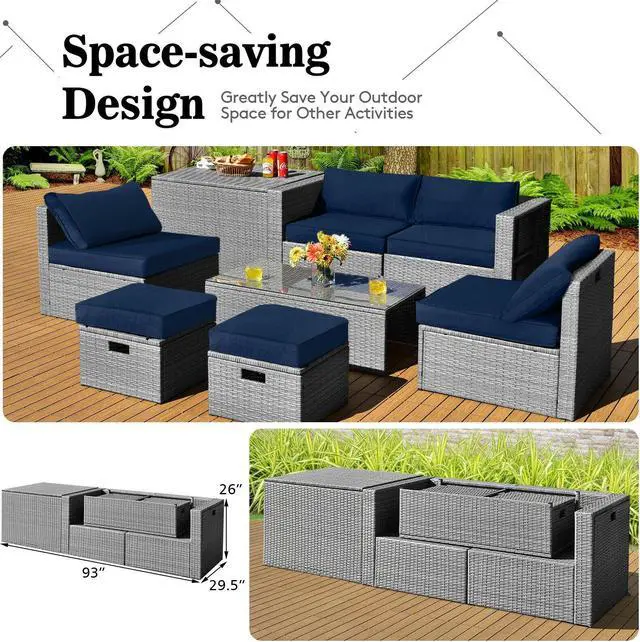 Space-saving Design: Different from the common outdoor furniture sets, this outdoor conversation set can be stored in a compact size that is 93" x 29.5" x 26" (L x W x H) in dimension. Therefore, it is able to greatly save your outdoor space when out of use.