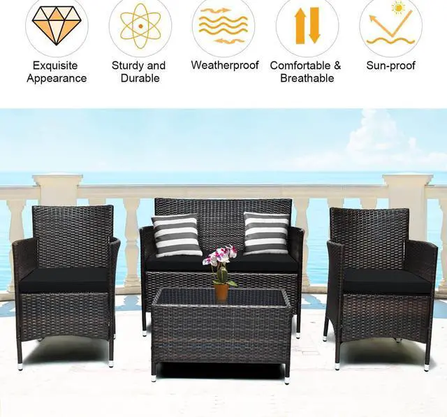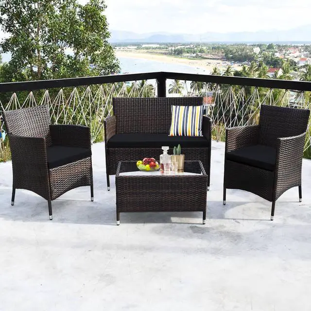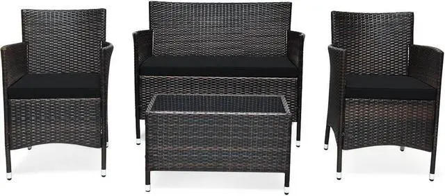 4-Piece Set: Includes two single chairs, one loveseat, and a tempered glass coffee table for a complete seating arrangement.