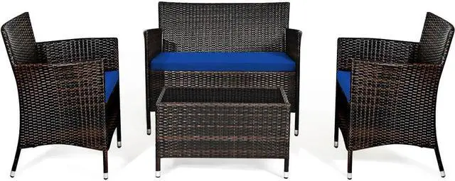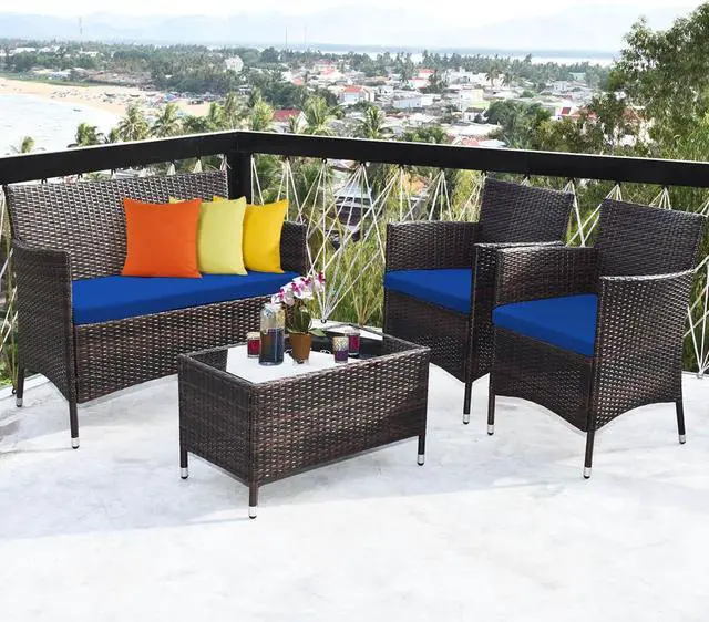 4-Piece Set: Includes two single chairs, one loveseat, and a tempered glass coffee table for a complete seating arrangement.