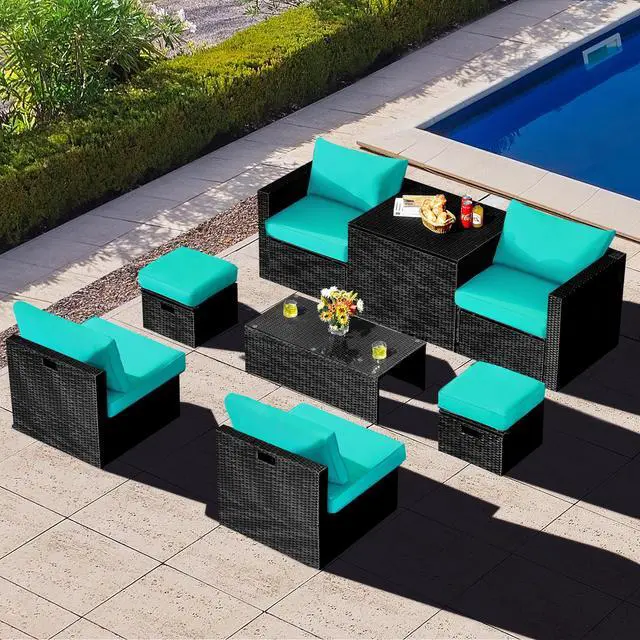 Space-saving Design: Different from the common outdoor furniture sets, this outdoor conversation set can be stored in a compact size that is 93" x 29.5" x 26" (L x W x H) in dimension. Therefore, it is able to greatly save your outdoor space when out of use.