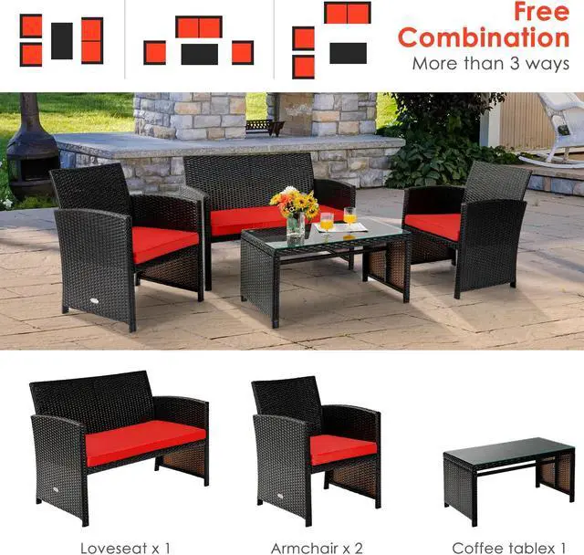 Easy to Change Combination: The 4-piece wicker sofa set provides you one loveseat, two single sofas, and one coffee table, which is diverse for you. For instance, you can share the double sofa and chat with your friends to spend leisure time. Also, the spacious single sofa is ideal for you.