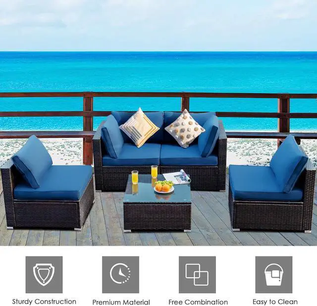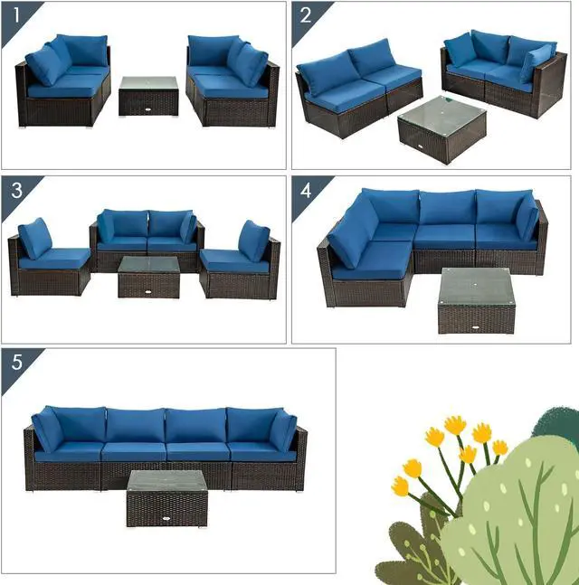 Free Combination for Wide Uses: The patio sofa set includes 2 armless sofas, 2 corner sofas, and 1 coffee table, which you can freely combine according to your need and the real situation. This sectional conversation couch set can be used both indoors and outdoors, which is suitable for the living room, balcony, garden, and so on.